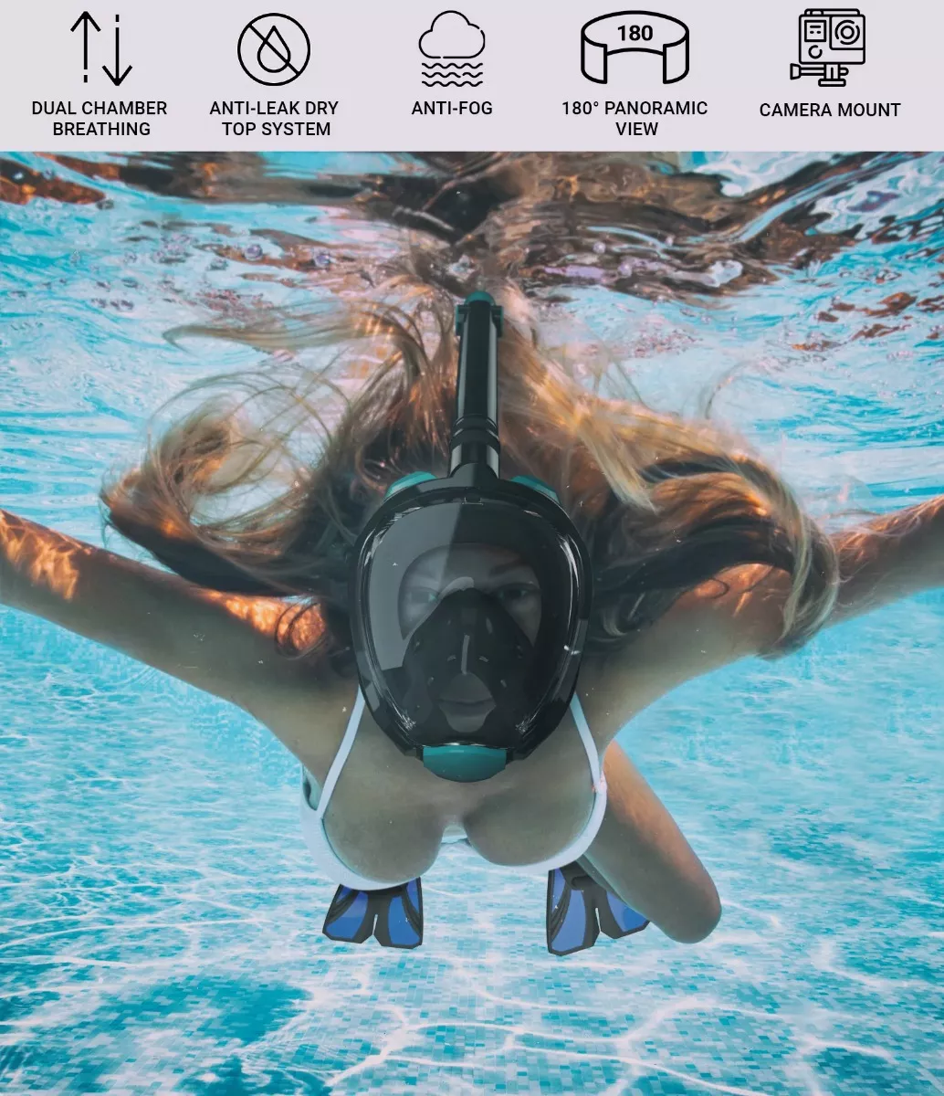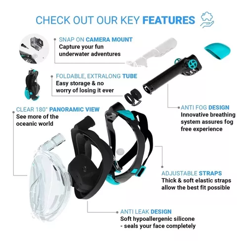 NO MÁS PROBLEMAS DE NIEBLA: Adiós desempañadores, problemas y oportunidades perdidas para ver los hermosos peces. La circulación respiratoria de la máscara de snorkel para toda la cara COZIA DESIGN Sport dentro del marco garantiza que no se empañen y que no haya estrés adicional. Solo sácalo y salta.