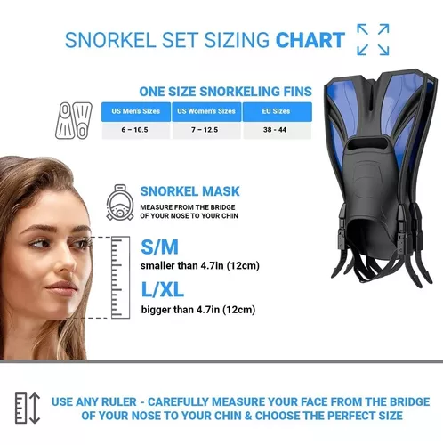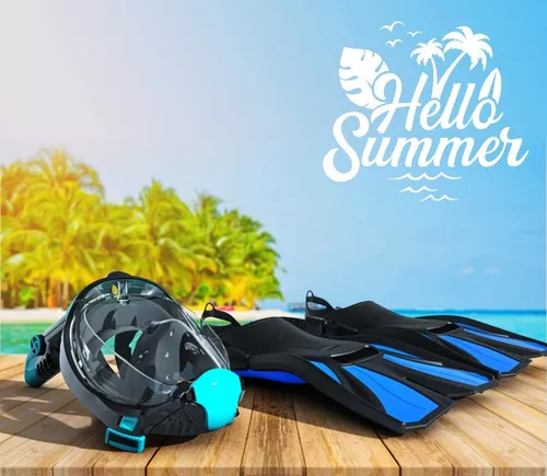 KIT COMPLETO DE SNORKEL CON CHAPALETAS TIPO FULL FACE MARCA COZIA DESIGN, INCLUYE CHAPALETAS AJUSTABLES, SNORKEL Y MASCARA