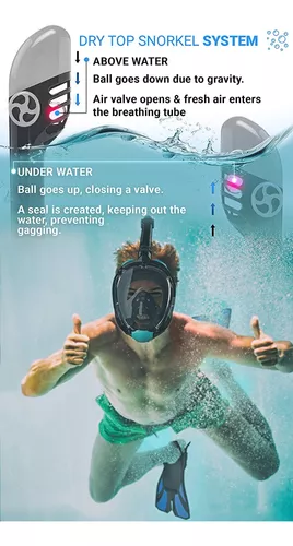 SNORKEL DRY TOP: no más agua en tu snorkel, no tienes que limpiarlo si te sumerges bajo el agua, y no entra agua si hay olas, salpicaduras o algo así. Solo respira cómodamente y disfruta del viaje.